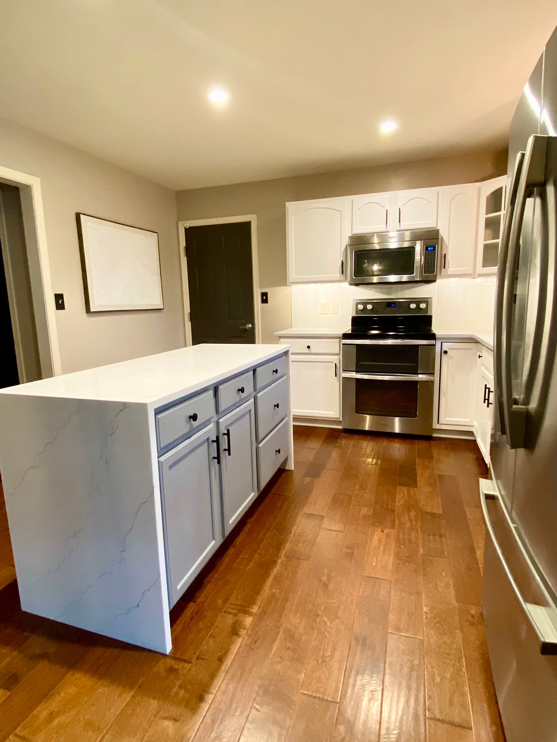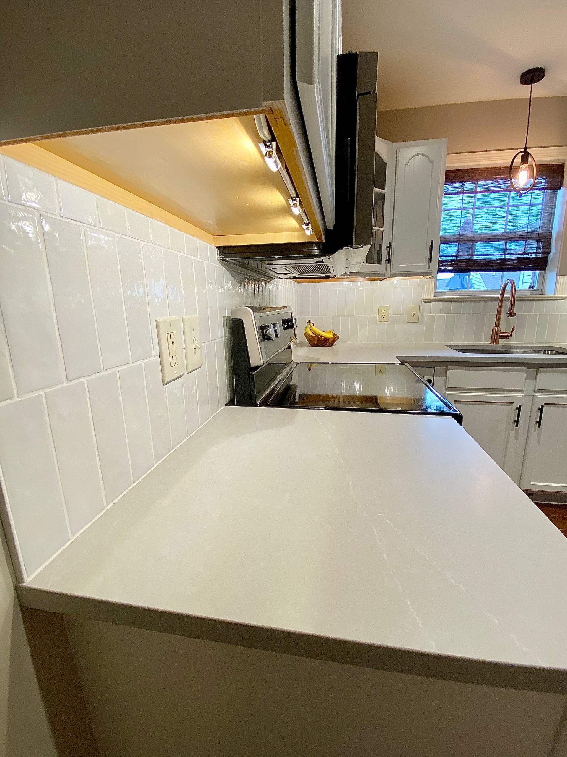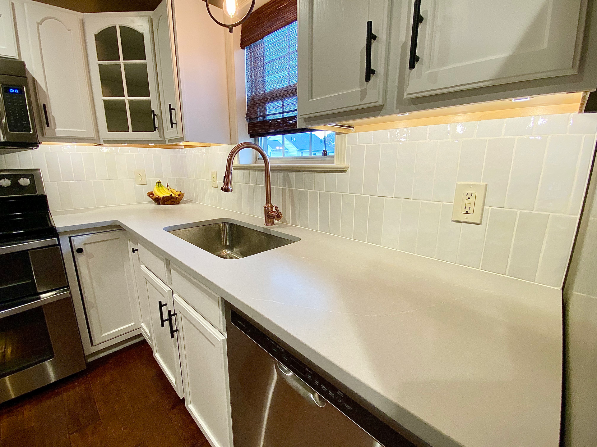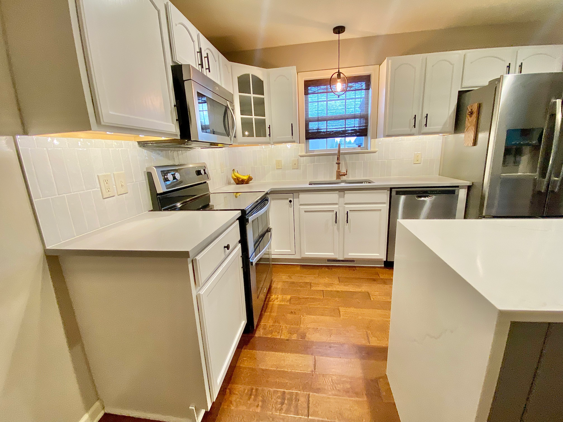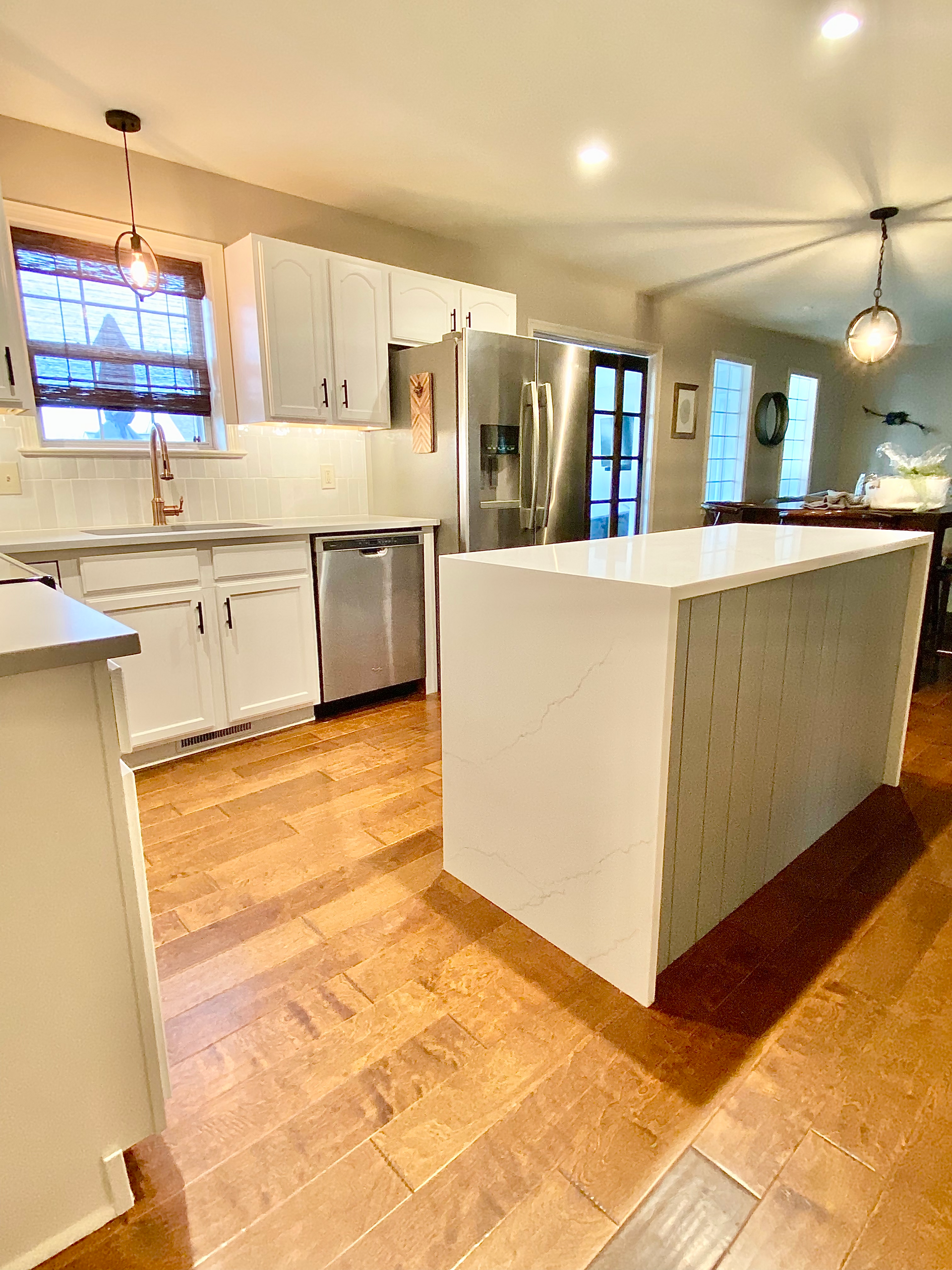 This kitchen was dark and dated so our goal was to brighten it up and bring a clean, contemporary feel to the home.